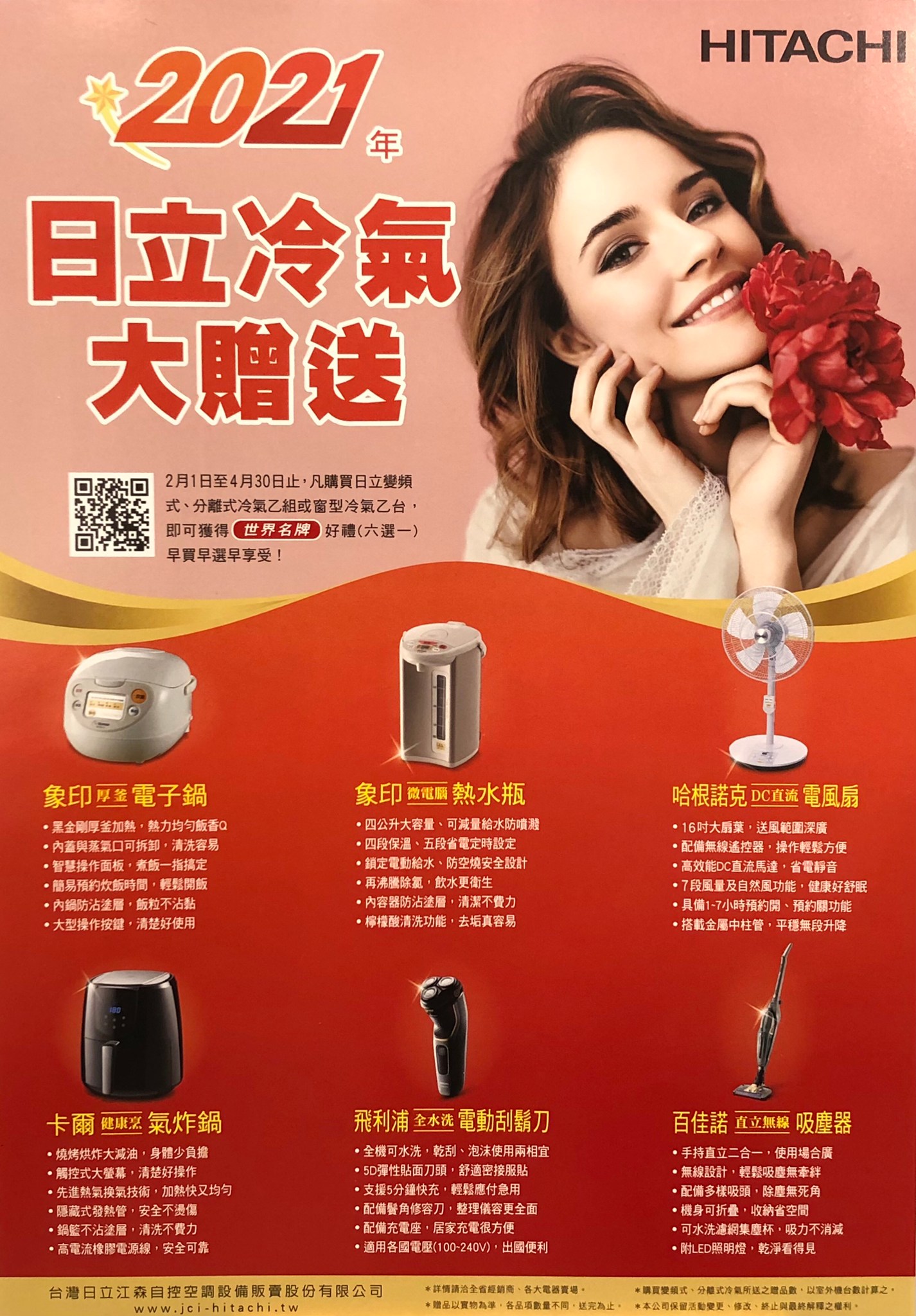 日立冷氣【名牌好禮6選1】活動只到4月底喔!
