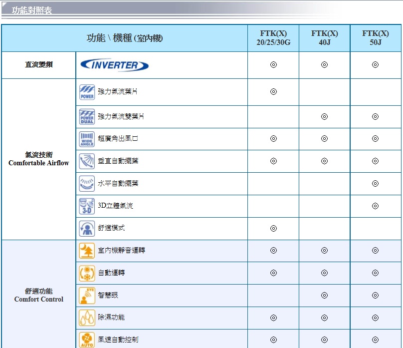 水平自動搖擺及3D立體氣流功能只有FTK(X)50J才提供