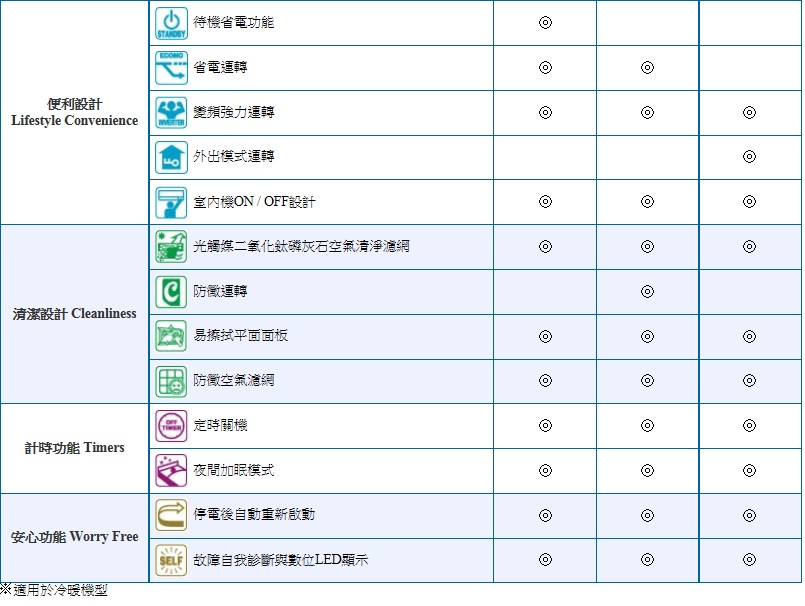冷氣房運轉也適用於寒冷的季節。冷暖型的FTX20/25/30G和40J及50J,即使在室外溫度低至10°C時,仍可以啟動冷氣。而FTX20/25/30G的 暖器功能可在室外溫度-15°C至20°C運作;FTX40/50J的暖氣功能可在室外溫度-15°C至18°C運作。因此,這些機型在寒冷的地區也可以使用。