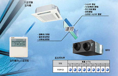 甚至於能增加能源效率。HRV的運轉能由遙控器作控制,同時能連控其他的空調和換氣系統。 |